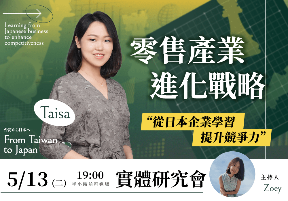 Taisa 曾在台灣創業,經營過自己的零售品牌,現在則在協助日本企業優化商業策略。這些第一線的觀察與經驗,會帶你離開「日常消費者」的視角,會帶你看見一個更深、更真實的日本零售世界。